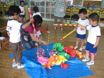 シャボン玉やさかなつり、ビー玉ころがし、ままごとなどで