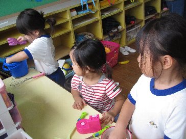 年少児は水泡を入れて泡風呂作りを楽しんでいます。