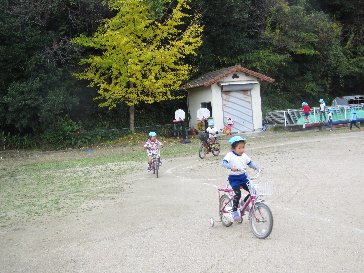 ゆりぐみさんは、自転車乗りが上手で、楽しんでいます。